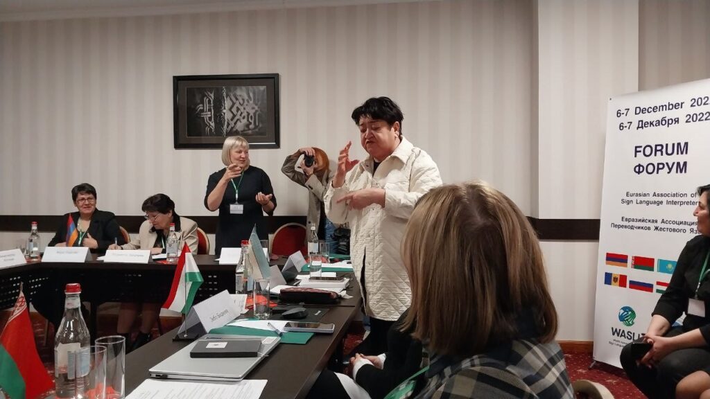 6 и 7 декабря 2022 года в Ереване состоялся первый Форум Евразийской ассоциации переводчиков жестового языка. На пространстве Евразии теперь появилась организация, которая будет представлять интересы переводчиков жестовых языков СНГ на международной арене.
